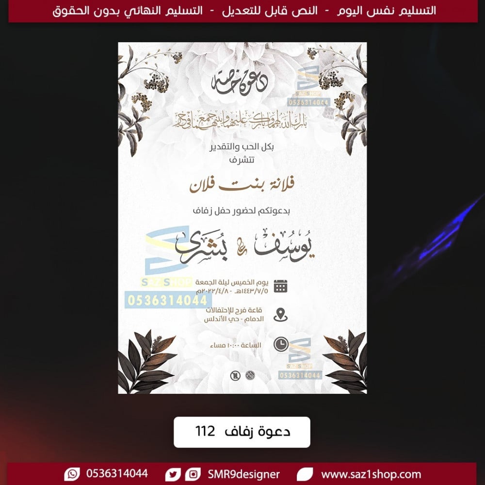إذا كنت تبحث عن تصميم لبطاقات دعوات زفاف تُعبّر عن ذوقك الرفيع وتُبرز تفاصيل يومك الخاص، فإن ساز شوب هو الوجهة الأمثل لك. نحن نقدم لكم تجربة رائعة ومخصصة لإنشاء تصميم بطاقات دعوات تُلهم ضيوفكم وتُضفي لمسة من الأناقة والتميز على حفل زفافكم.